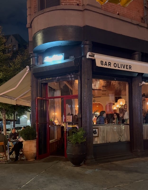 On Wednesday, I did what you could call a bar crawl for someone in their late thirties. I stopped by Bar Olivier to see Aisa and ordered the shrimp, then popped into Bridges. I didn’t eat there but decided on a mezcal highball instead of a martini. Someone told me changing up your routine invites new energy. Let’s see if ordering a new drink does the trick. Then I went to Lei Wine, where Bowen Yang was sitting up front. I’m still starstruck by the SNL cast; it’s a cultural institution I can always count on. Annie, who owns Lei (and King), is the sweetest, and they just launched a Substack. I waved to someone I thought I knew but didn’t, and someone else complimented my faux-leather jacket. Overall, a win.
