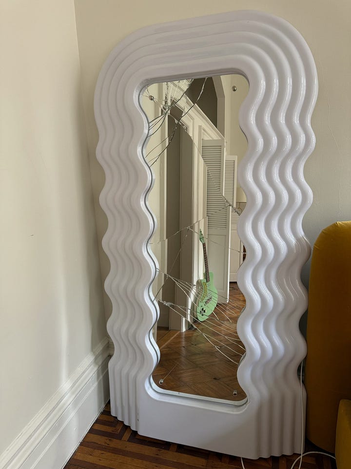 The mirror is the most expensive thing I own. An Ettore Sottsass mirror I fell in love with when everyone discovered Copenhagen style and couldn’t get enough of Pernille Teisbaek. I bought it after I made money in a live-video shopping app I started nine years ago. I told myself I needed to own one nice piece of art, so I bought this goddamn mirror. Two years later it broke. It’s been sitting broken ever since.